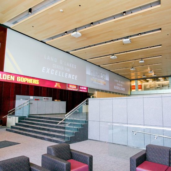 ASI played a critical role in the success of the UWM Chemistry Building by engineering and delivering a highly complex ceiling panel system for the lecture halls that met both functional and aesthetic objectives. The project’s main challenge – designing a double-arched ceiling on a slant that wrapped down onto the walls, repeated seven times – demanded advanced coordination and problem-solving. To achieve a cohesive visual effect, ASI precisely arranged the panels to originate from the same piece of wood, maintaining a continuous grain pattern across 260 uniquely shaped, quadrilateral panels.